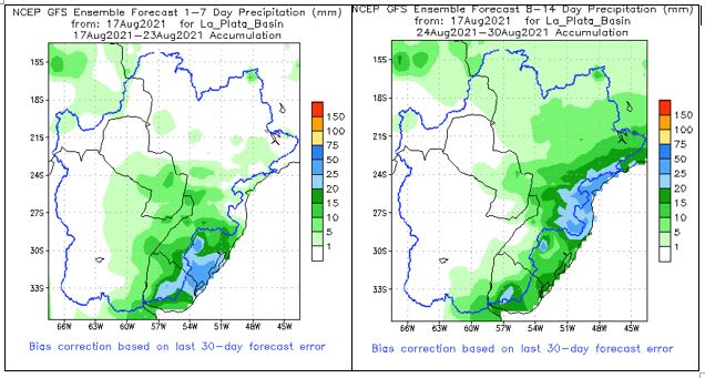 Los embalses de acumulación del Brasil que se ubican en la cuenca alta del río Paraná, aguas arriba de la Central Hidroeléctrica de Yacyretá, se encuentran con volúmenes útiles y niveles muy por debajo de lo normal debido a las escasas precipitaciones registradas.