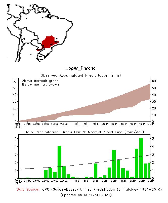 Los embalses de acumulación del Brasil que se ubican en la cuenca alta del río Paraná, aguas arriba de la Central Hidroeléctrica de Yacyretá, se encuentran con volúmenes útiles y niveles muy por debajo de lo normal debido a las escasas precipitaciones registradas.