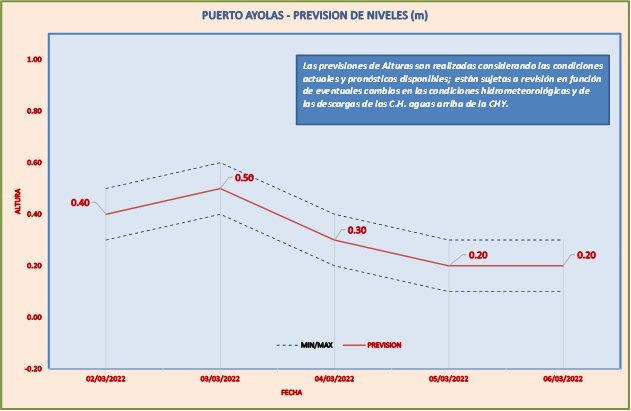 Las previsiones de Alturas son realizadas considerando las condiciones actuales y pronósticos disponibles y están sujetas a revisión en función de eventuales cambios en las condiciones hidrometeorológicas y de las descargas de las C.H. aguas arriba de la CHY.