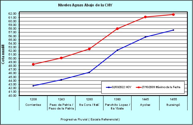 REFERENCIA: a modo de información – valores que originan riesgos de inundación en la zona de Ayolas.