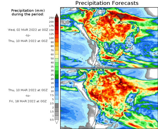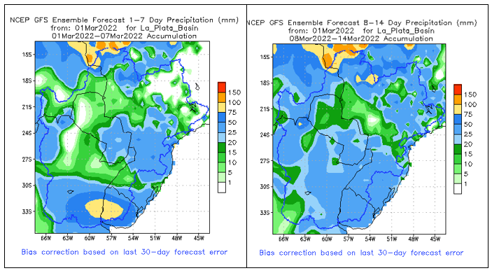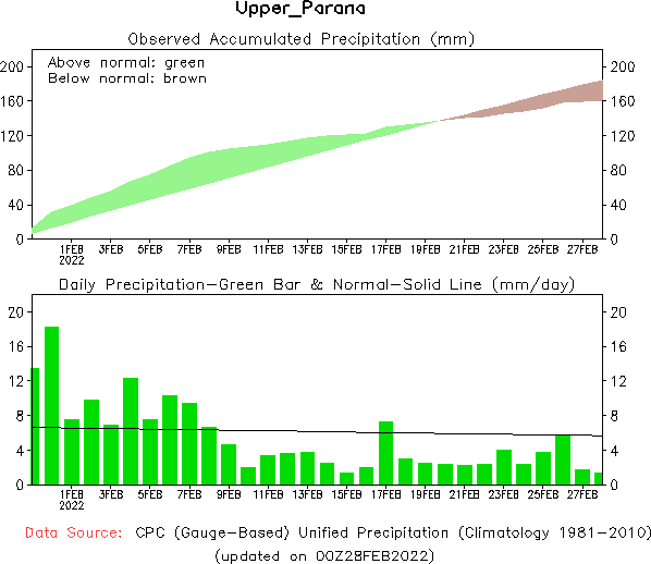 El pronóstico Hidrometeorológico del Centro Climático de referencia indica una tendencia semanal de poca significancia hidrológica en la cuenca de interés para la CHY con dispersión geográfica según sea la fuente consultada. (Ver gráfico Nro. 1).