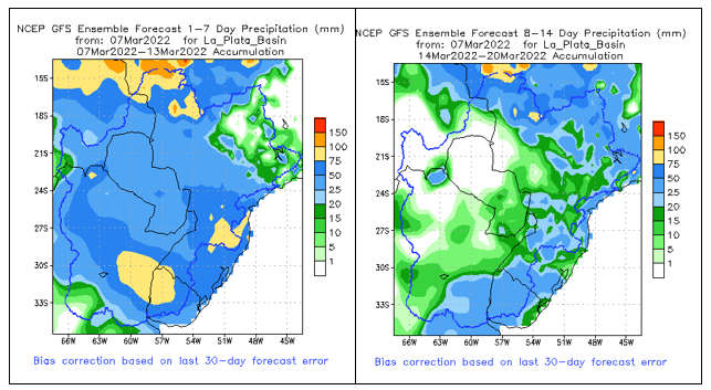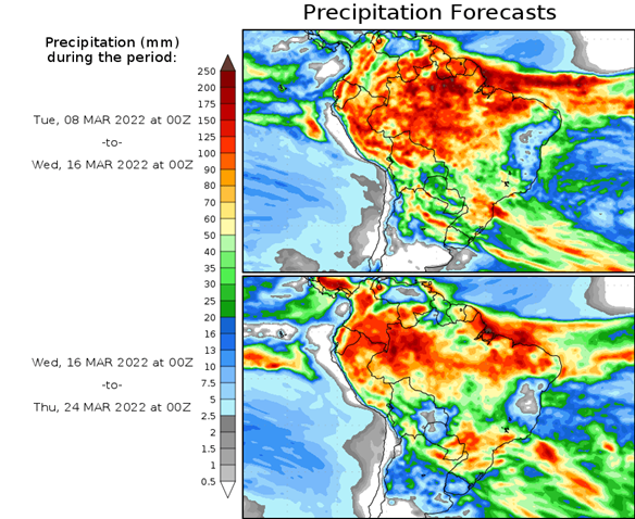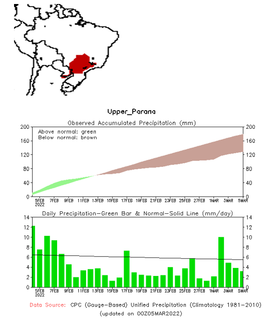 El pronóstico Hidrometeorológico del Centro Climático de referencia indica una tendencia semanal de poca significancia hidrológica en la cuenca de interés para la CHY con dispersión geográfica según sea la fuente consultada. (Ver gráfico Nro. 1).