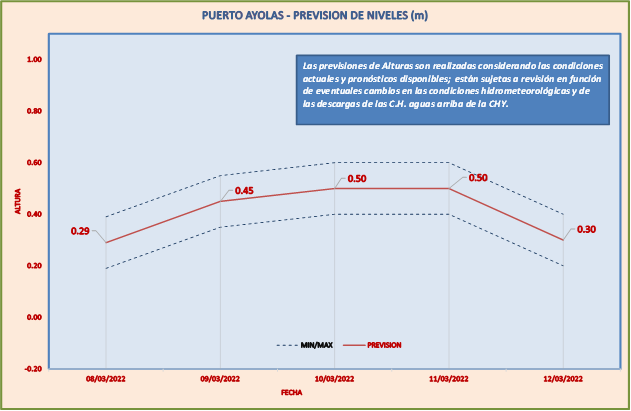 Las previsiones de Alturas son realizadas considerando las condiciones actuales y pronósticos disponibles y están sujetas a revisión en función de eventuales cambios en las condiciones hidrometeorológicas y de las descargas de las C.H. aguas arriba de la CHY.