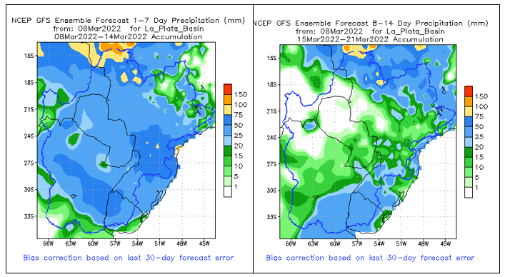 El pronóstico Hidrometeorológico del Centro Climático de referencia indica una tendencia semanal de poca significancia hidrológica en la cuenca de interés para la CHY con dispersión geográfica según sea la fuente consultada. (Ver gráfico Nro. 1).