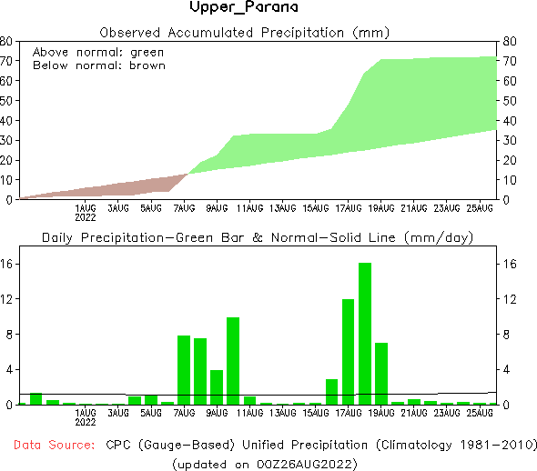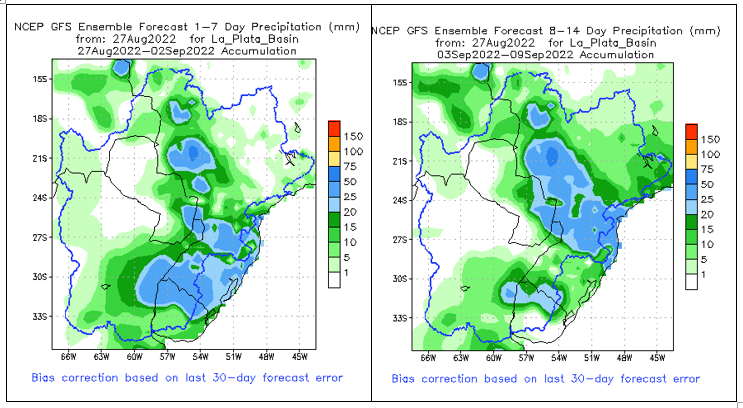 El pronóstico Hidrometeorológico del Centro Climático de referencia indica una tendencia semanal de poca significancia hidrológica en la cuenca de interés para la CHY con dispersión geográfica según sea la fuente consultada. (Ver gráfico Nro. 1).