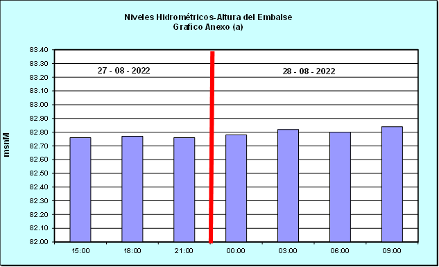 Nivel de Ayer (06:00 hs) = 82.74 mSNM Nivel de Hoy (06:00 hs) = 82.80 Msnm