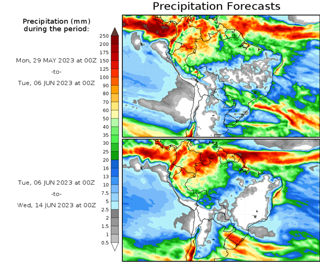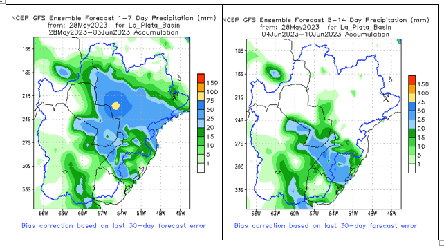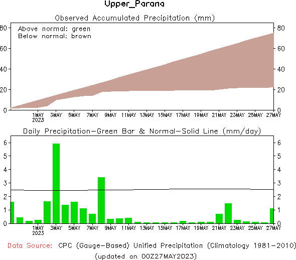El pronóstico Hidrometeorológico del Centro Climático de referencia indica una tendencia semanal de poca significancia hidrológica en la cuenca de interés para la CHY con dispersión geográfica según sea la fuente consultada. (Ver gráfico Nro. 1).