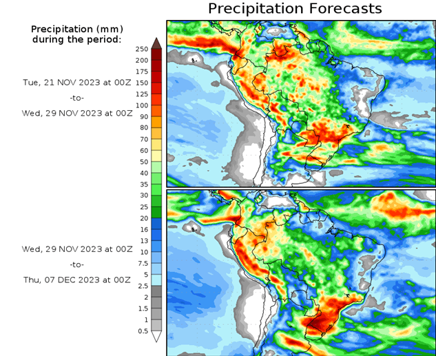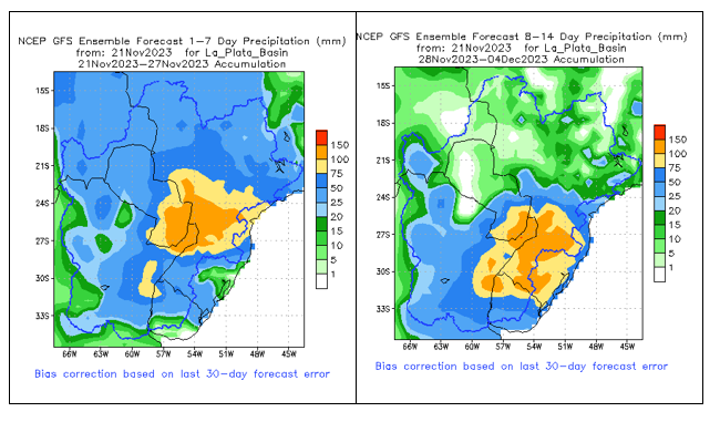 El pronóstico Hidrometeorológico del Centro Climático de referencia indica una tendencia semanal de significancia hidrológica en la cuenca de interés para la CHY con dispersión geográfica según sea la fuente consultada. (Ver gráfico Nro. 1).