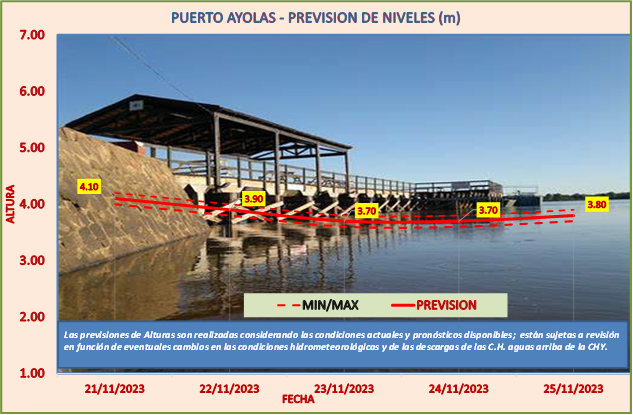 Las previsiones de Alturas son realizadas considerando las condiciones actuales y pronósticos disponibles y están sujetas a revisión en función de eventuales cambios en las condiciones hidrometeorológicas y de las descargas de las C.H. aguas arriba de la CHY.