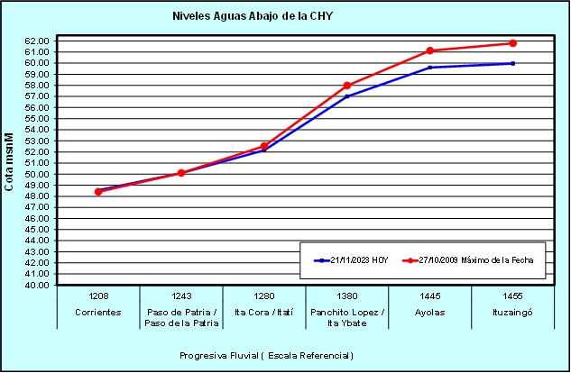 REFERENCIA: A modo de información – valores que originan riesgos de inundación en la zona de Ayolas.