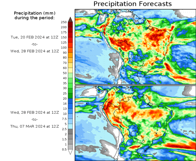 El pronóstico Hidrometeorológico del Centro Climático de referencia indica una tendencia semanal de poca significancia hidrológica en la cuenca de interés para la CHY con dispersión geográfica según sea la fuente consultada. (Ver gráfico Nro. 1).