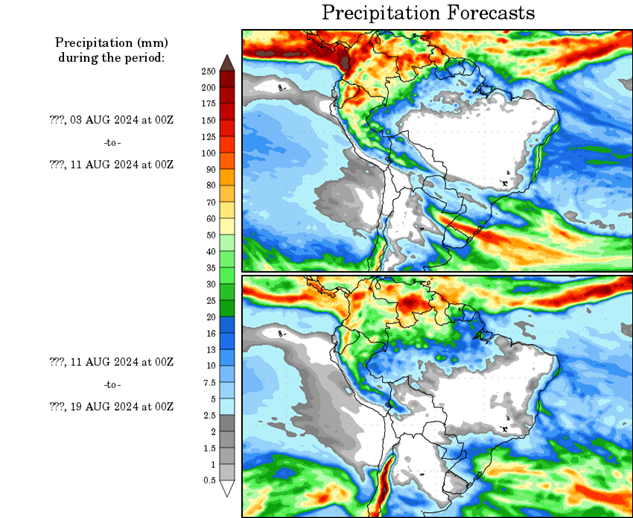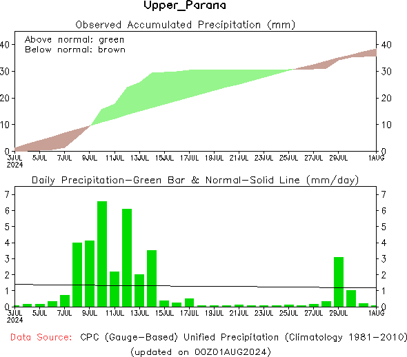 El pronóstico Hidrometeorológico del Centro Climático de referencia indica una tendencia semanal de poca significancia hidrológica en la cuenca de interés para la CHY con dispersión geográfica según sea la fuente consultada. (Ver gráfico Nro. 1).