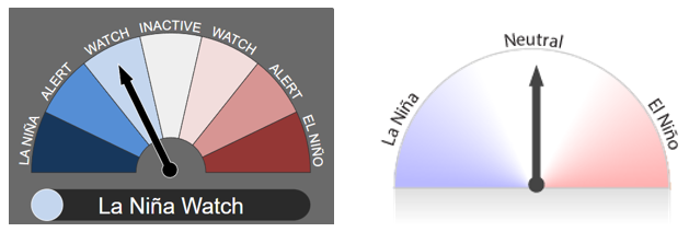 La Perspectiva ENSO se encuentra actualmente en ‘Vigilancia de La Niña’, lo que significa que hay algunas señales de que La Niña podría formarse en el Océano Pacífico más adelante en 2024. Los indicadores atmosféricos y oceánicos se encuentran actualmente dentro de los umbrales neutrales de ENSO.