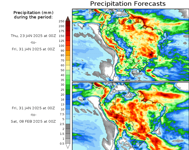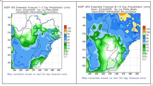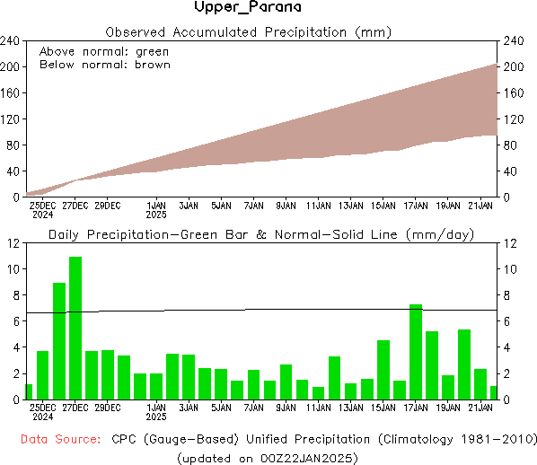 El pronóstico Hidrometeorológico del Centro Climático de referencia indica una tendencia semanal de poca significancia hidrológica en la cuenca de interés para la CHY con dispersión geográfica según sea la fuente consultada. (Ver gráfico Nro. 1).