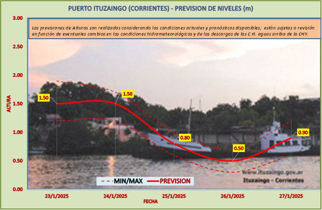 Las previsiones de Alturas son realizadas considerando las condiciones actuales y pronósticos disponibles y están sujetas a revisión en función de eventuales cambios en las condiciones hidrometeorológicas y de las descargas de las C.H. aguas arriba de la CHY.