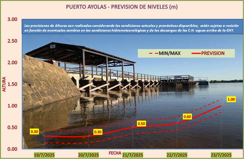 Las previsiones de Alturas son realizadas considerando las condiciones actuales y pronósticos disponibles y están sujetas a revisión en función de eventuales cambios en las condiciones hidrometeorológicas y de las descargas de las C.H. aguas arriba de la CHY.