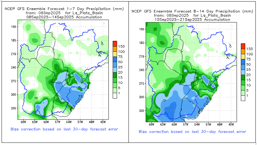 El pronóstico Hidrometeorológico del Centro Climático de referencia indica una tendencia semanal de poca significancia hidrológica en la cuenca de interés para la CHY con dispersión geográfica según sea la fuente consultada. (Ver gráfico Nro. 1).