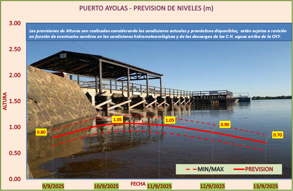 Las previsiones de Alturas son realizadas considerando las condiciones actuales y pronósticos disponibles y están sujetas a revisión en función de eventuales cambios en las condiciones hidrometeorológicas y de las descargas de las C.H. aguas arriba de la CHY.