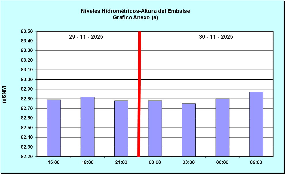 Nivel de Ayer (06:00 hs) = 82.86 mSNM Nivel de Hoy (06:00 hs) = 82.80 mSNM