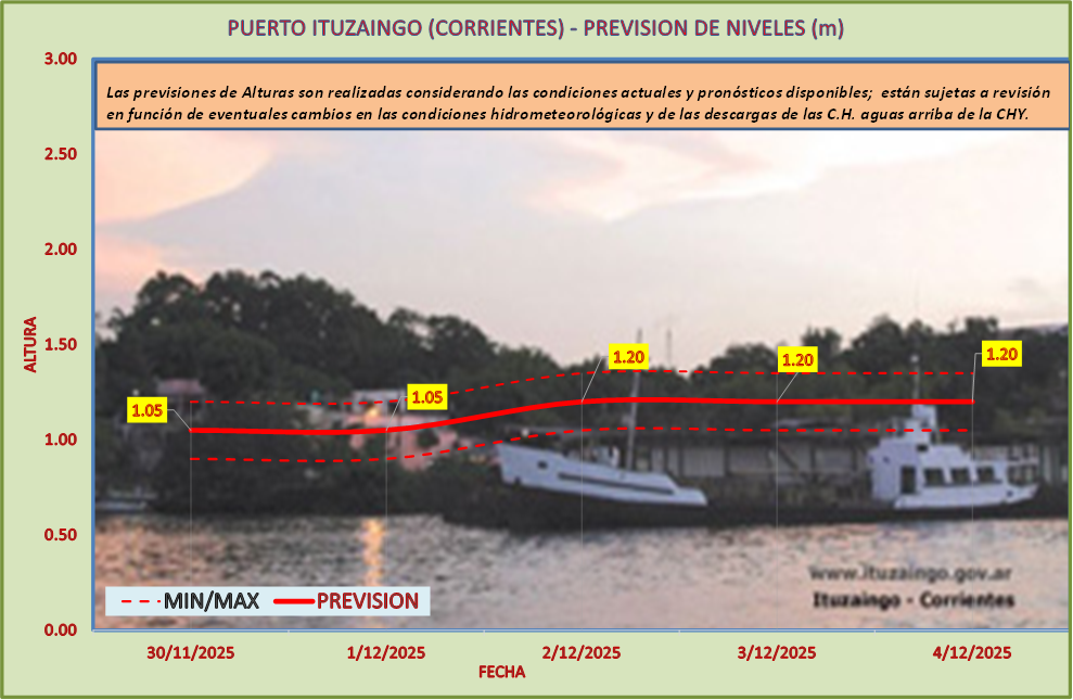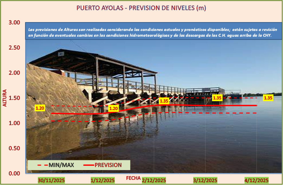 Las previsiones de Alturas son realizadas considerando las condiciones actuales y pronósticos disponibles y están sujetas a revisión en función de eventuales cambios en las condiciones hidrometeorológicas y de las descargas de las C.H. aguas arriba de la CHY.