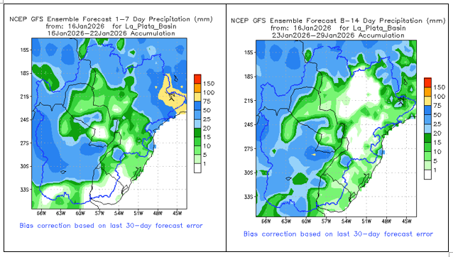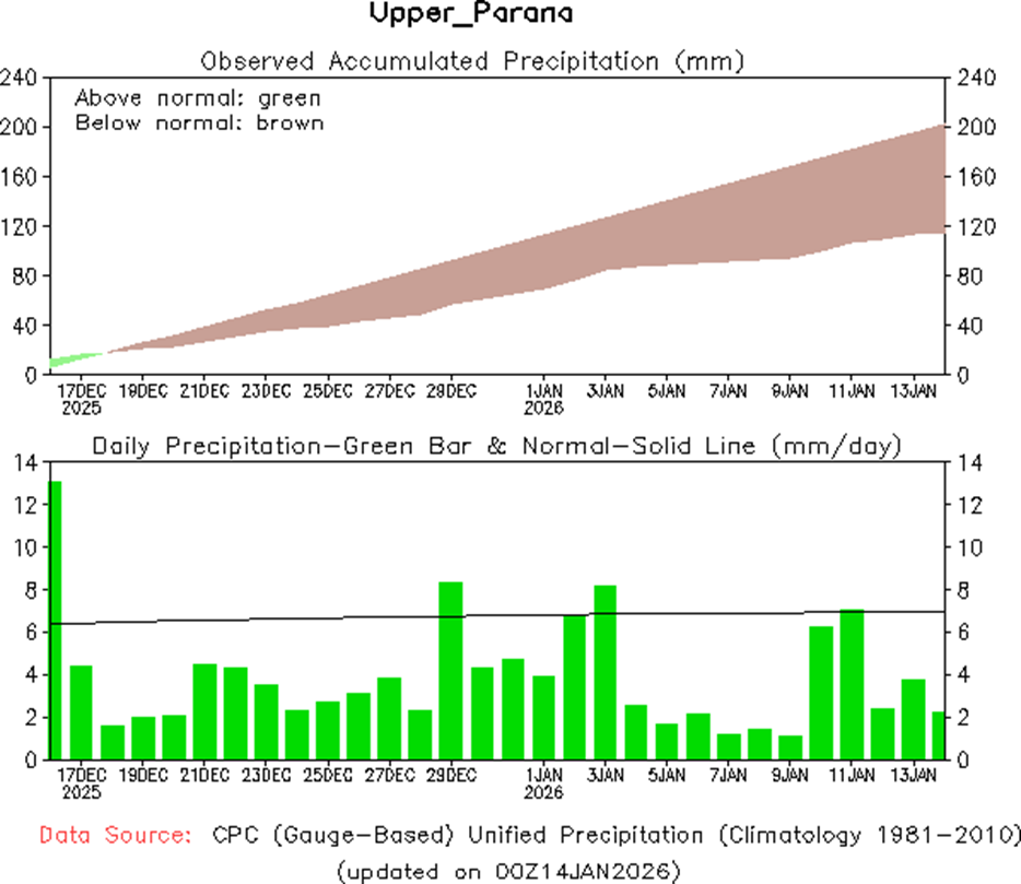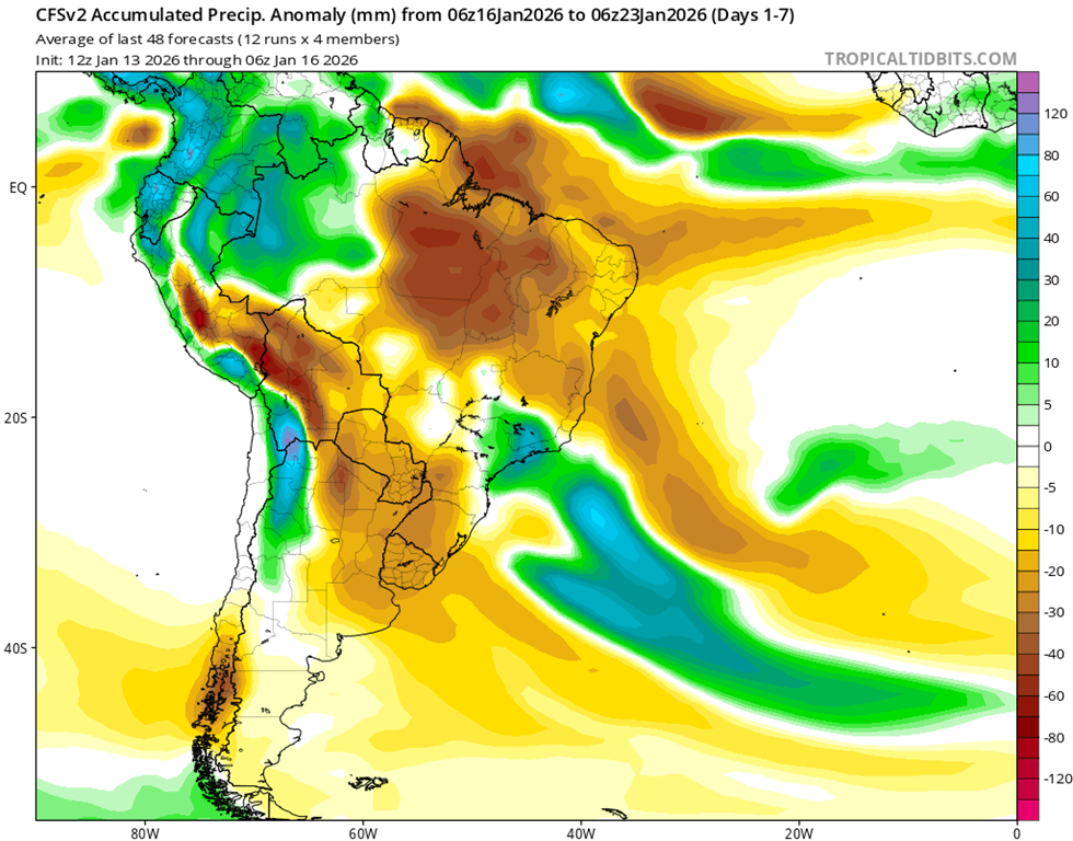 • El índice del Modo Anular Sur (SAM) se mantiene neutral al 3 de enero de 2026. Se prevé que se mantenga prácticamente neutral durante las próximas dos semanas. Posteriormente, existen diversos resultados posibles, lo que implica una menor claridad en la probable fase del SAM.