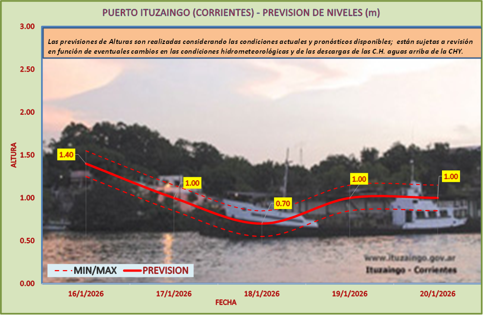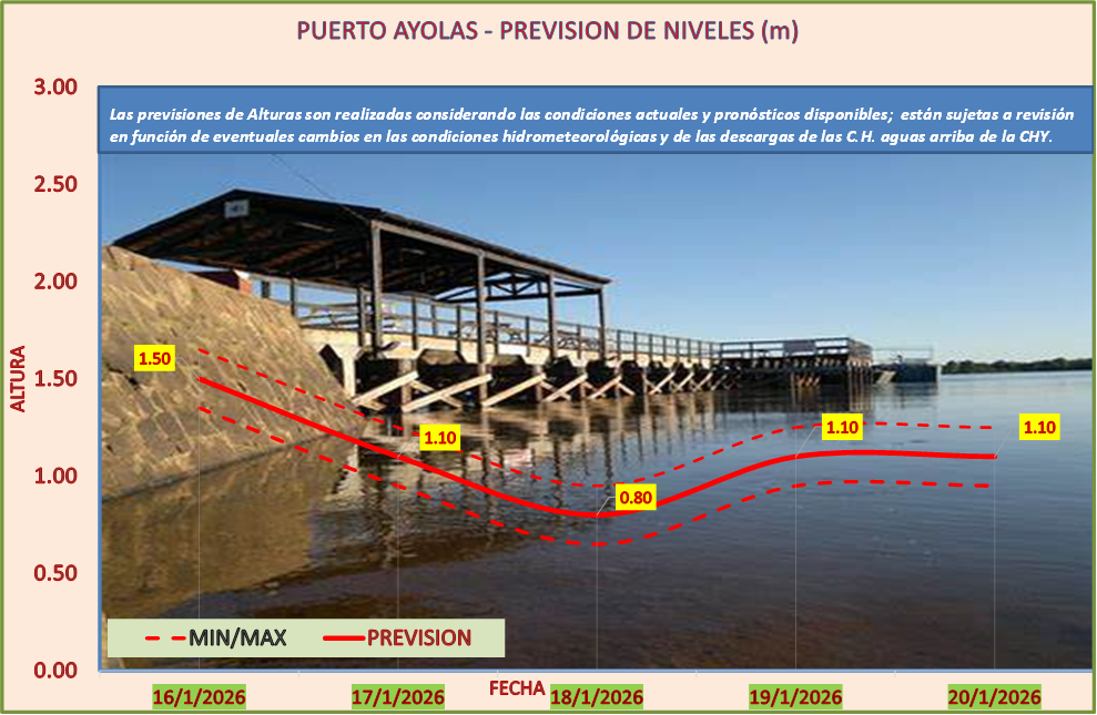 Las previsiones de Alturas son realizadas considerando las condiciones actuales y pronósticos disponibles y están sujetas a revisión en función de eventuales cambios en las condiciones hidrometeorológicas y de las descargas de las C.H. aguas arriba de la CHY.