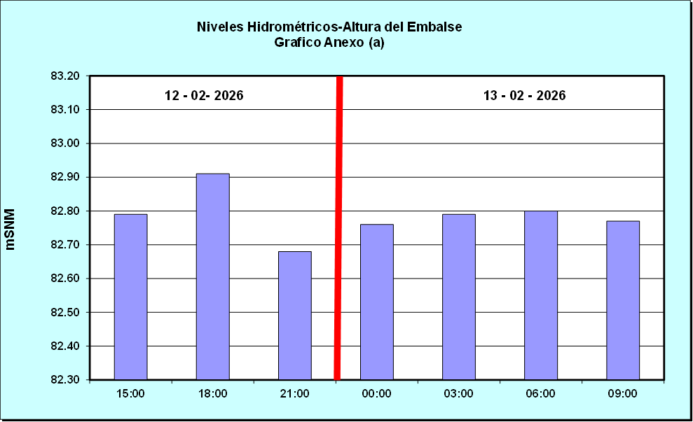 Nivel de Ayer (06:00 hs) = 82.87 mSNM Nivel de Hoy (06:00 hs) = 82.80 mSNM
