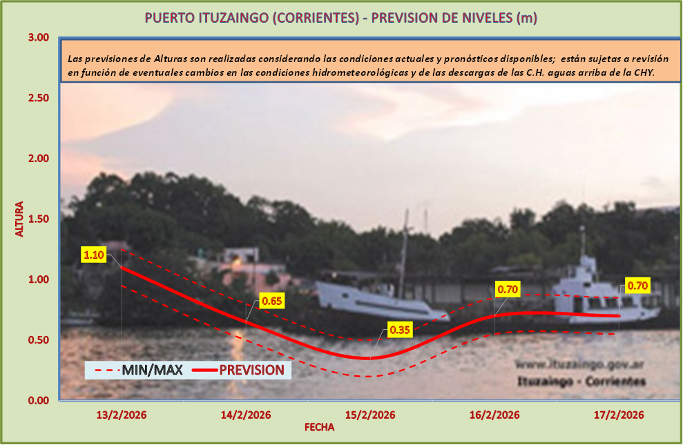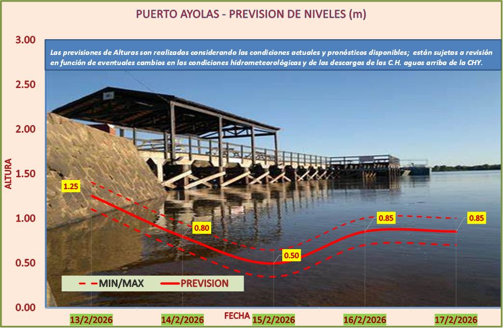 Las previsiones de Alturas son realizadas considerando las condiciones actuales y pronósticos disponibles y están sujetas a revisión en función de eventuales cambios en las condiciones hidrometeorológicas y de las descargas de las C.H. aguas arriba de la CHY.