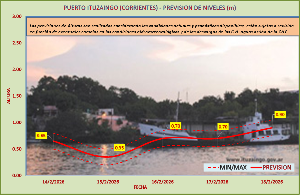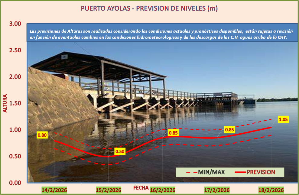 Las previsiones de Alturas son realizadas considerando las condiciones actuales y pronósticos disponibles y están sujetas a revisión en función de eventuales cambios en las condiciones hidrometeorológicas y de las descargas de las C.H. aguas arriba de la CHY.