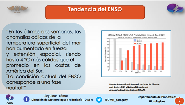 El Niño-Oscilación del Sur (ENOS) es actualmente neutral (ni La Niña ni El Niño). Los indicadores oceánicos y atmosféricos para el Océano Pacífico tropical se encuentran en niveles ENOS neutrales.
