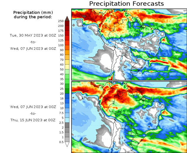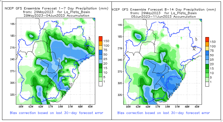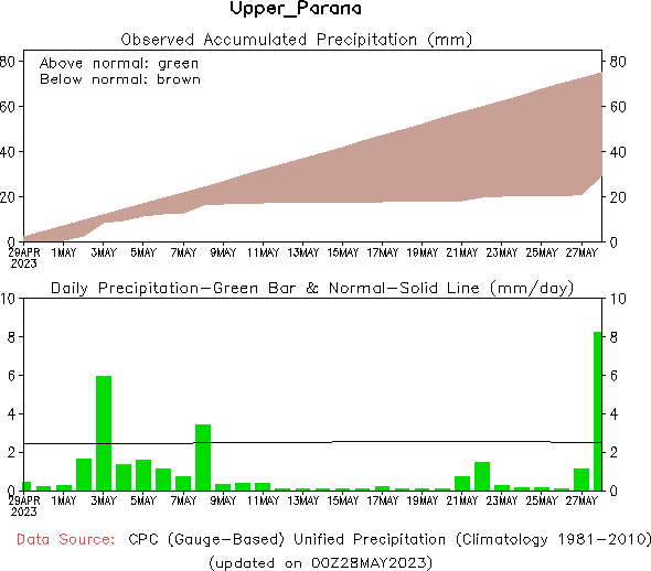El pronóstico Hidrometeorológico del Centro Climático de referencia indica una tendencia semanal de poca significancia hidrológica en la cuenca de interés para la CHY con dispersión geográfica según sea la fuente consultada. (Ver gráfico Nro. 1).