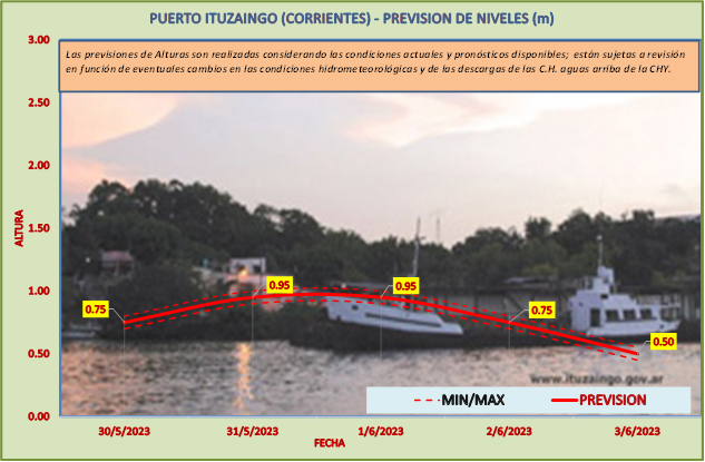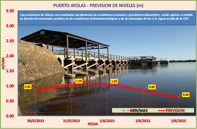 Las previsiones de Alturas son realizadas considerando las condiciones actuales y pronósticos disponibles y están sujetas a revisión en función de eventuales cambios en las condiciones hidrometeorológicas y de las descargas de las C.H. aguas arriba de la CHY.