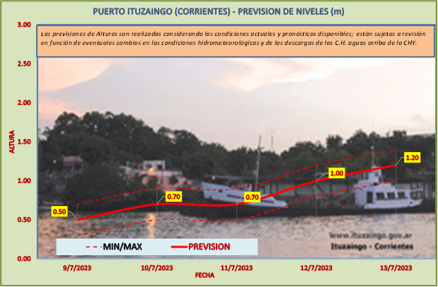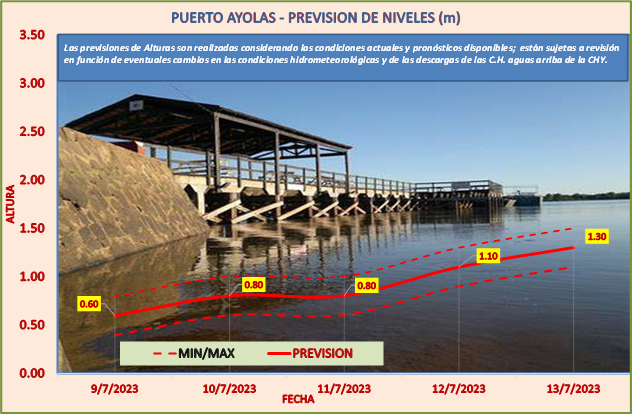 Las previsiones de Alturas son realizadas considerando las condiciones actuales y pronósticos disponibles y están sujetas a revisión en función de eventuales cambios en las condiciones hidrometeorológicas y de las descargas de las C.H. aguas arriba de la CHY.