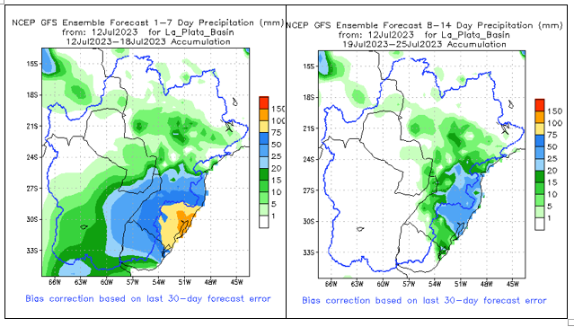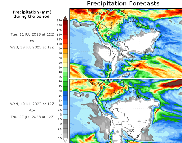 El pronóstico Hidrometeorológico del Centro Climático de referencia indica una tendencia semanal de poca significancia hidrológica en la cuenca de interés para la CHY con dispersión geográfica según sea la fuente consultada. (Ver gráfico Nro. 1).