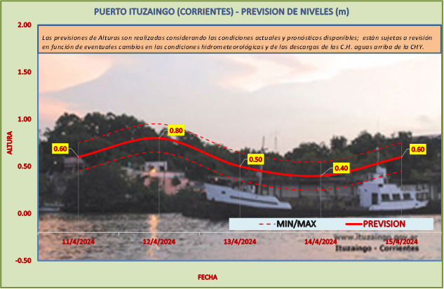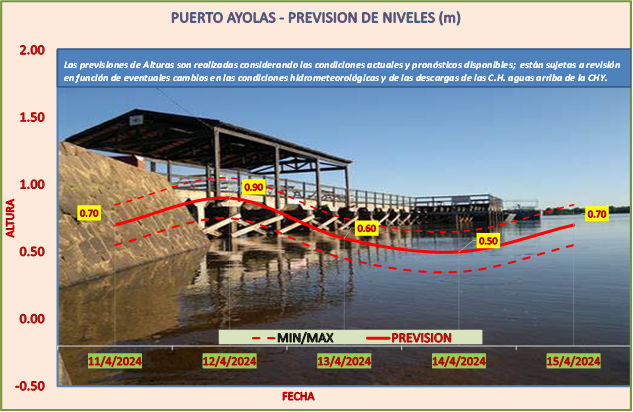 Las previsiones de Alturas son realizadas considerando las condiciones actuales y pronósticos disponibles y están sujetas a revisión en función de eventuales cambios en las condiciones hidrometeorológicas y de las descargas de las C.H. aguas arriba de la CHY.