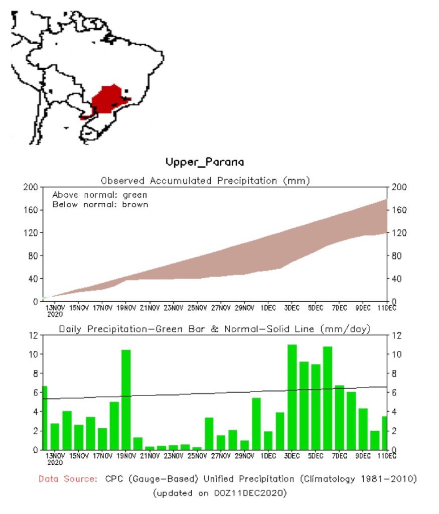 El pronóstico Hidrometeorológico del Centro Climático de referencia indica una tendencia semanal de leve significancia hidrológica en la cuenca de interés para la CHY con dispersión geográfica según sea la fuente consultada. (Ver gráfico Nro. 1).