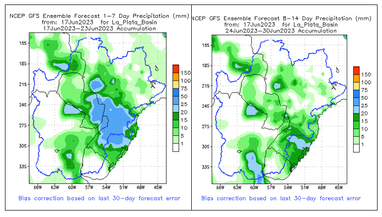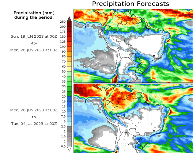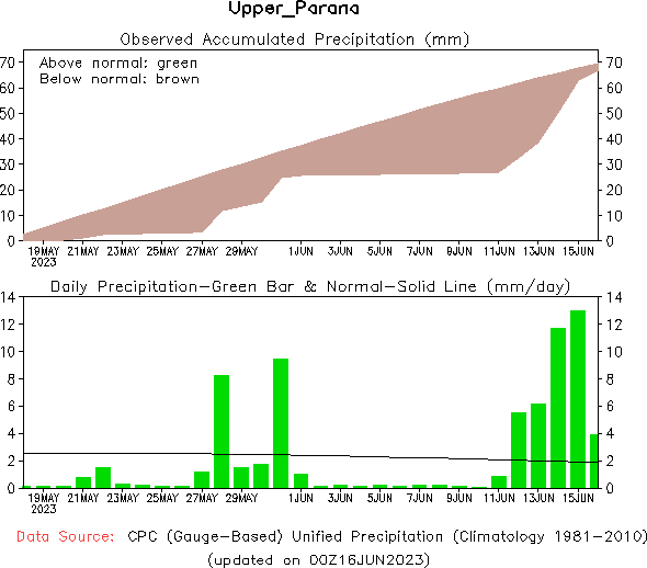 El pronóstico Hidrometeorológico del Centro Climático de referencia indica una tendencia semanal de poca significancia hidrológica en la cuenca de interés para la CHY con dispersión geográfica según sea la fuente consultada. (Ver gráfico Nro. 1).
