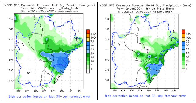 El pronóstico Hidrometeorológico del Centro Climático de referencia indica una tendencia semanal de poca significancia hidrológica en la cuenca de interés para la CHY con dispersión geográfica según sea la fuente consultada. (Ver gráfico Nro. 1).