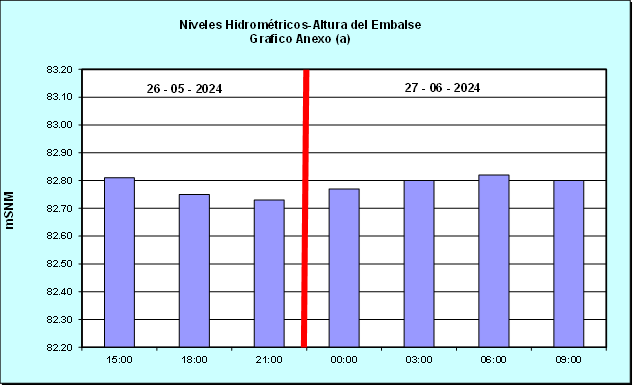 Nivel de Ayer (06:00 hs) = 82.86 mSNM Nivel de Hoy (06:00 hs) = 82.82 mSNM
