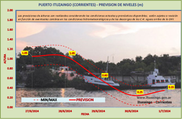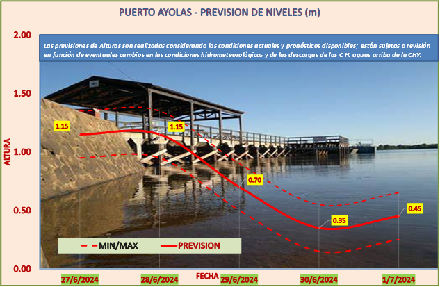Las previsiones de Alturas son realizadas considerando las condiciones actuales y pronósticos disponibles y están sujetas a revisión en función de eventuales cambios en las condiciones hidrometeorológicas y de las descargas de las C.H. aguas arriba de la CHY.