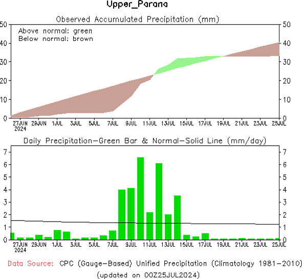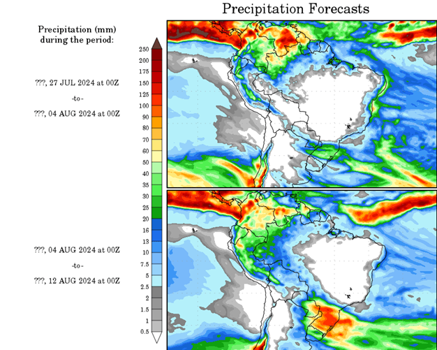 El pronóstico Hidrometeorológico del Centro Climático de referencia indica una tendencia semanal de poca significancia hidrológica en la cuenca de interés para la CHY con dispersión geográfica según sea la fuente consultada. (Ver gráfico Nro. 1).