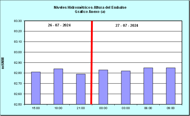 Nivel de Ayer (06:00 hs) = 82.94 mSNM Nivel de Hoy (06:00 hs) = 82.82 mSNM