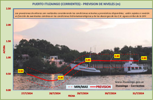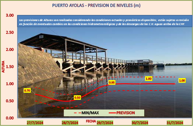 En el Puerto de Ayolas se registró una altura de 1.00 m, mientras que se espera que los niveles acompañen la tendencia de los caudales.