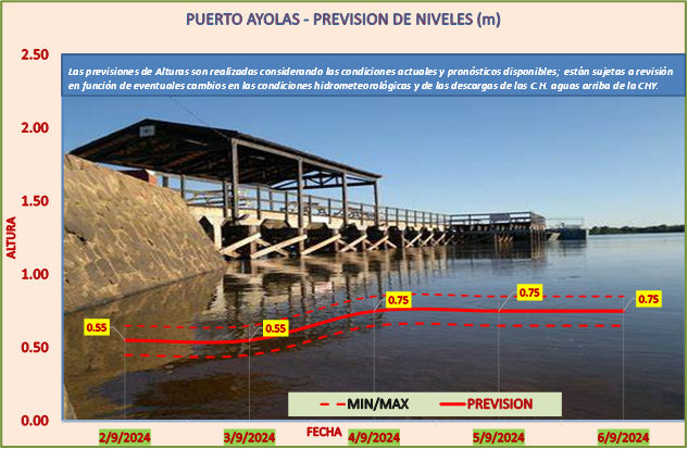En el Puerto de Ayolas se registró una altura de 0.50 m, mientras que se espera que los niveles acompañen la tendencia de los caudales.