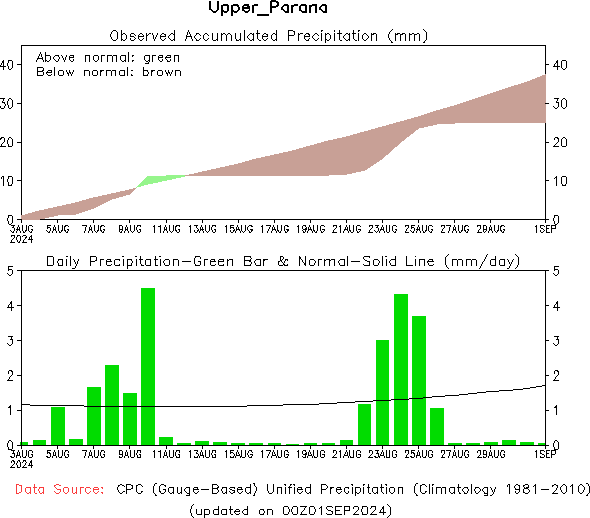 El pronóstico Hidrometeorológico del Centro Climático de referencia indica una tendencia semanal de poca significancia hidrológica en la cuenca de interés para la CHY con dispersión geográfica según sea la fuente consultada. (Ver gráfico Nro. 1).