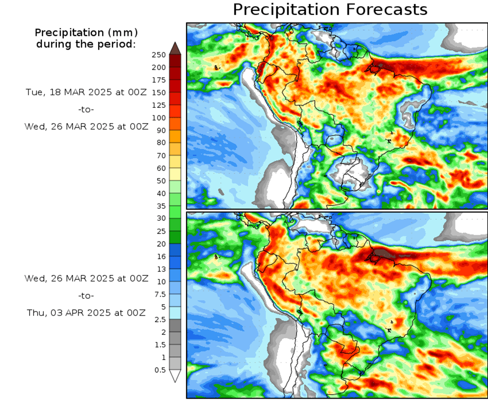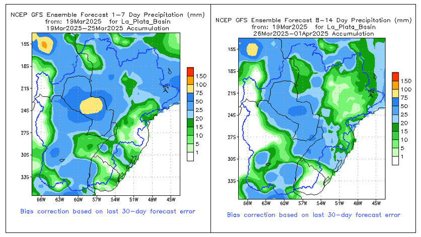 El pronóstico Hidrometeorológico del Centro Climático de referencia indica una tendencia semanal de poca significancia hidrológica en la cuenca de interés para la CHY con dispersión geográfica según sea la fuente consultada. (Ver gráfico Nro. 1).