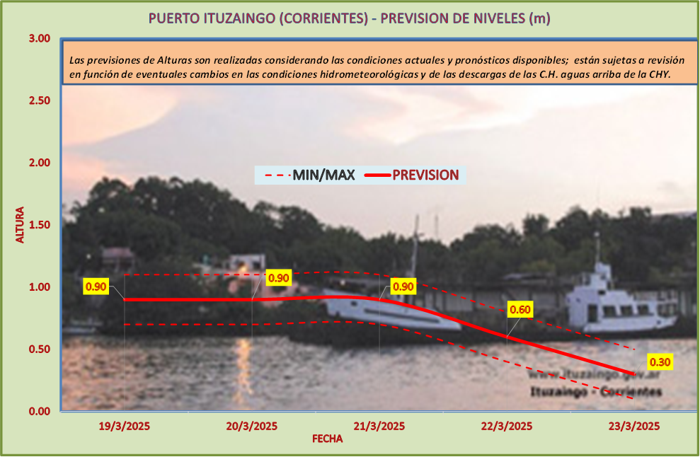 Las previsiones de Alturas son realizadas considerando las condiciones actuales y pronósticos disponibles y están sujetas a revisión en función de eventuales cambios en las condiciones hidrometeorológicas y de las descargas de las C.H. aguas arriba de la CHY.