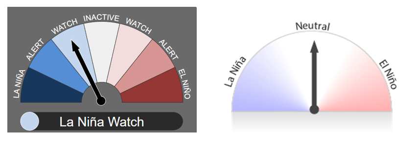 El fenómeno de El Niño-Oscilación del Sur (ENSO) es neutro, y tanto las temperaturas superficiales del mar (TSM) en el Océano Pacífico ecuatorial central como los patrones atmosféricos se encuentran en niveles neutros respecto de El Niño. Los índices atmosféricos, como los relacionados con los patrones de presión superficial, nubes y vientos alisios, son en general consistentes con un estado neutro respecto de El Niño. Aunque algunos han mostrado señales similares a las de La Niña durante las últimas semanas, estas señales no han sido consistentes.