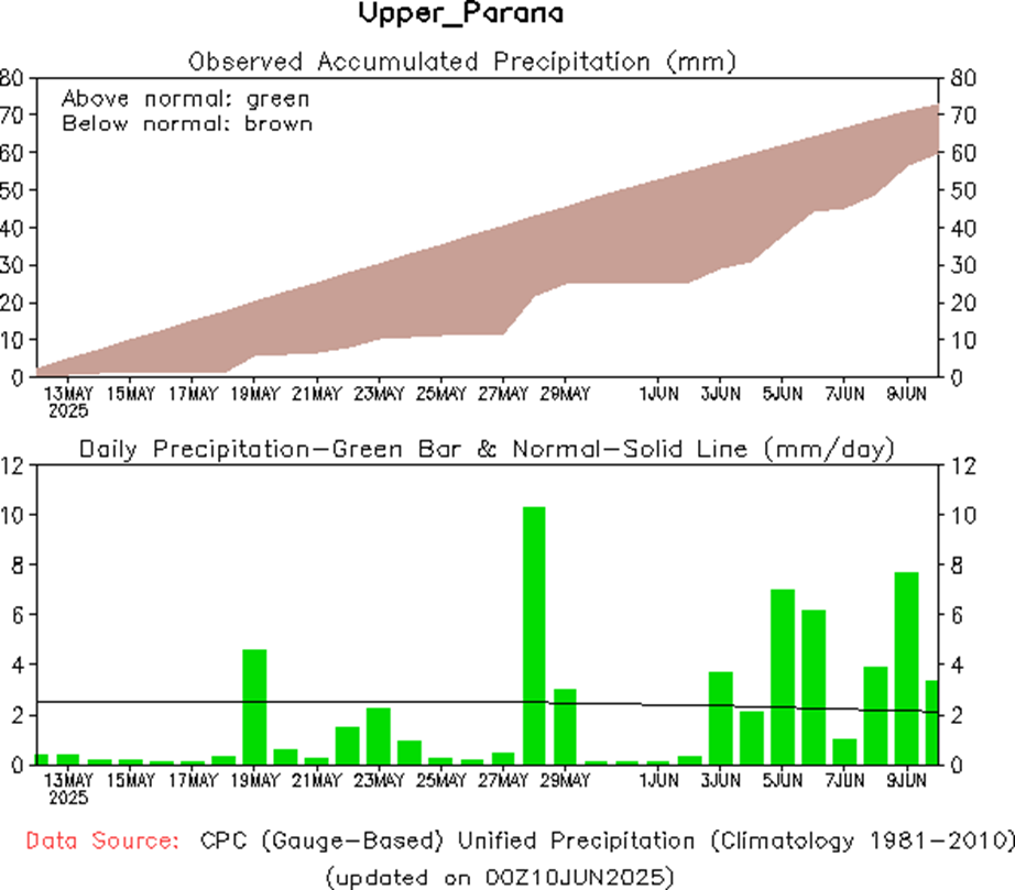 El fenómeno de El Niño-Oscilación del Sur (ENOS) es neutro. El último valor de Niño 3.4 para la semana que finalizó el 18 de mayo fue de -0,01 °C. Los valores neutros de ENOS se encuentran entre -0,8 °C y +0,8 °C.