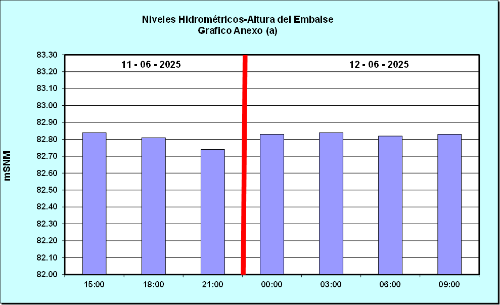 Nivel de Ayer (06:00 hs) = 82.85 mSNM Nivel de Hoy (06:00 hs) = 82.82 mSNM